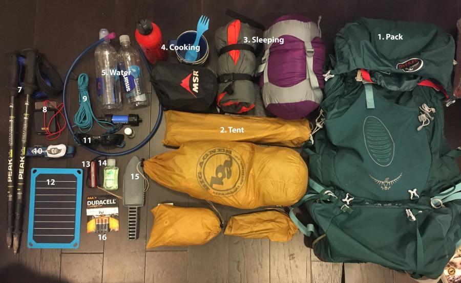 This is both not my full set of gear and also more than I will actually be carrying. This does not include first aid, clothes, food or toiletries. This (plus the aforementioned missing items) will also be split up with my mom, who has the same pack, different color. I won’t be able to specify my base weight until we actually divide everything up and pack the packs.