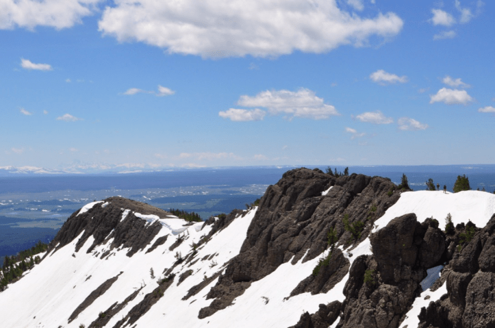 I did the Mount Washburn hike on my first full day in Yellowstone as part of my redemption from my last trip with my mom when I hadn’t been able to summit on our quest to find a pika. On that trip we took the Chittenden Road which I could see from the top was completely snow free and a fairly easy grade up to the watchtower. The trail I took from Dunraven Pass was completely covered in snow, sometimes higher than my head. It was a serious calf workout and I realized I timed it poorly because as I approached the top around noon the snow was getting softer and softer. Hiking alone in grizzly territory I mastered the art of catching up to hiking groups and then awkwardly lurking behind them so I wouldn’t actually be alone.