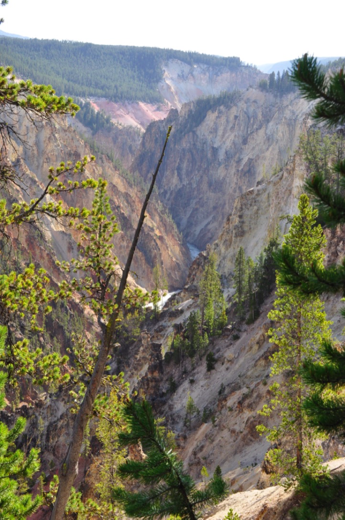 On my second full day I did a grand tour of the park, stopping for short hikes along the way and to check out wildlife and hot springs. The first small hike I did was the South Rim Trail along the Grand Canyon of the Yellowstone. Part of the trail was under construction so I only hiked up to the Lower Falls. The rock colors made my photographs look surprisingly like watercolors, and also made me realize for the first time why the park is called Yellowstone…