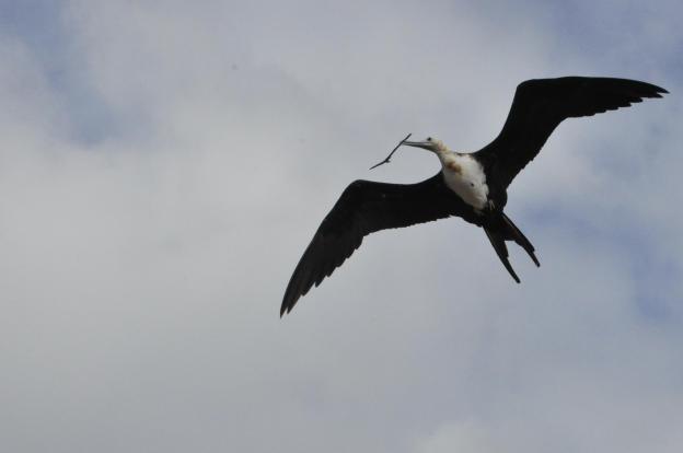 I believe this is a juvenile frigatebird, also practicing carrying sticks.