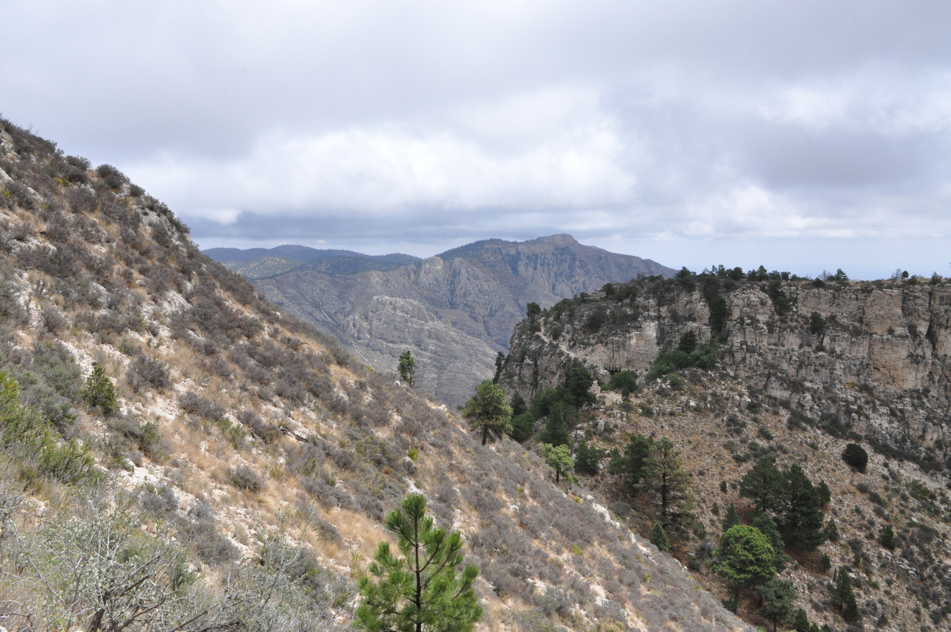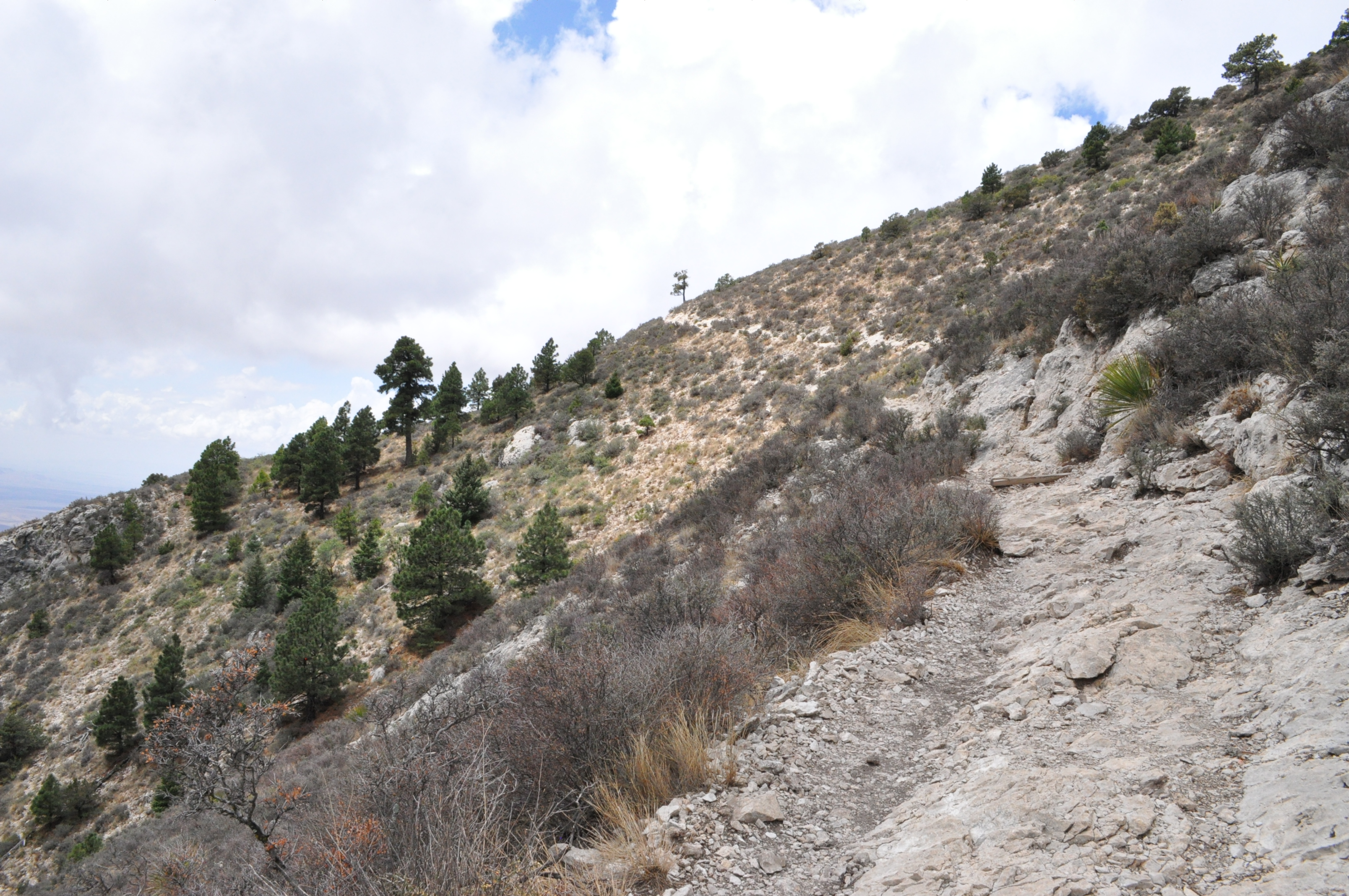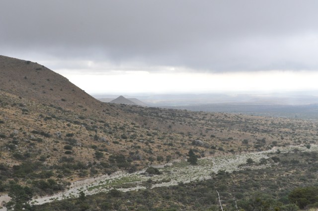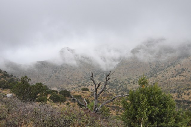 The major hiking attraction is, of course, the highest point in Texas. The hike to the peak is about 8 miles round trip. It was completely socked in on my way up, so I spent lots of time appreciating the changing flora as a ascended from the desert into the mountains. Even when I got to the tippity top I couldn’t see a thing, and resigned myself to having to come back again for the view (such a hardship, I know).