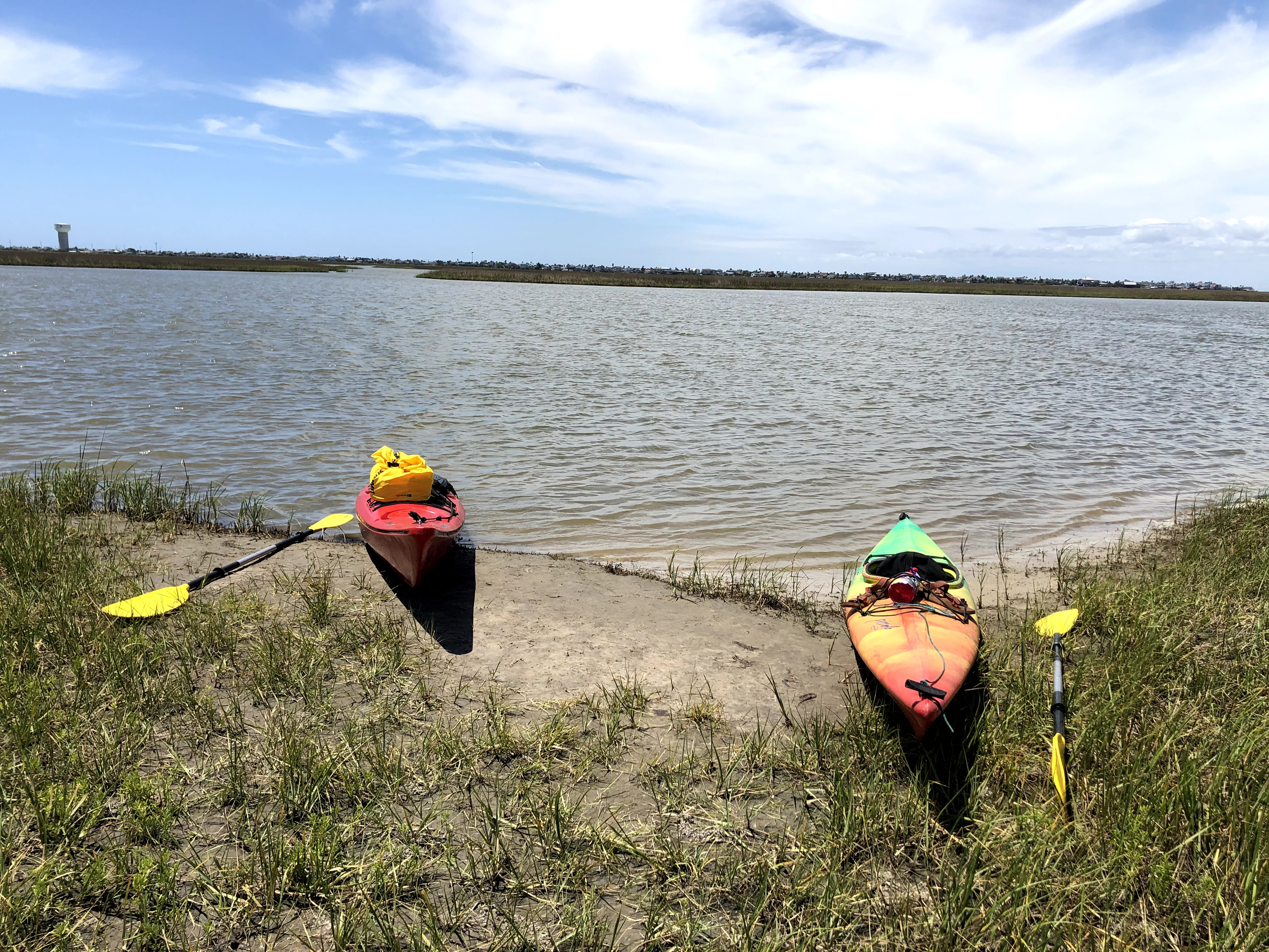 Driving through Galveston the beaches were full of people, but when we got into the park itself there was almost no one there and everyone was keeping a significant distance. The park has a beach side and a bay side, and we were kayaking on the bay side, through saltwater grasses, stopping at lookout points. There are kayaking “trails” with numbered “blazes” to follow, and the birdlife is amazing. I kind of tricked Matt into going on a birding tour with me.