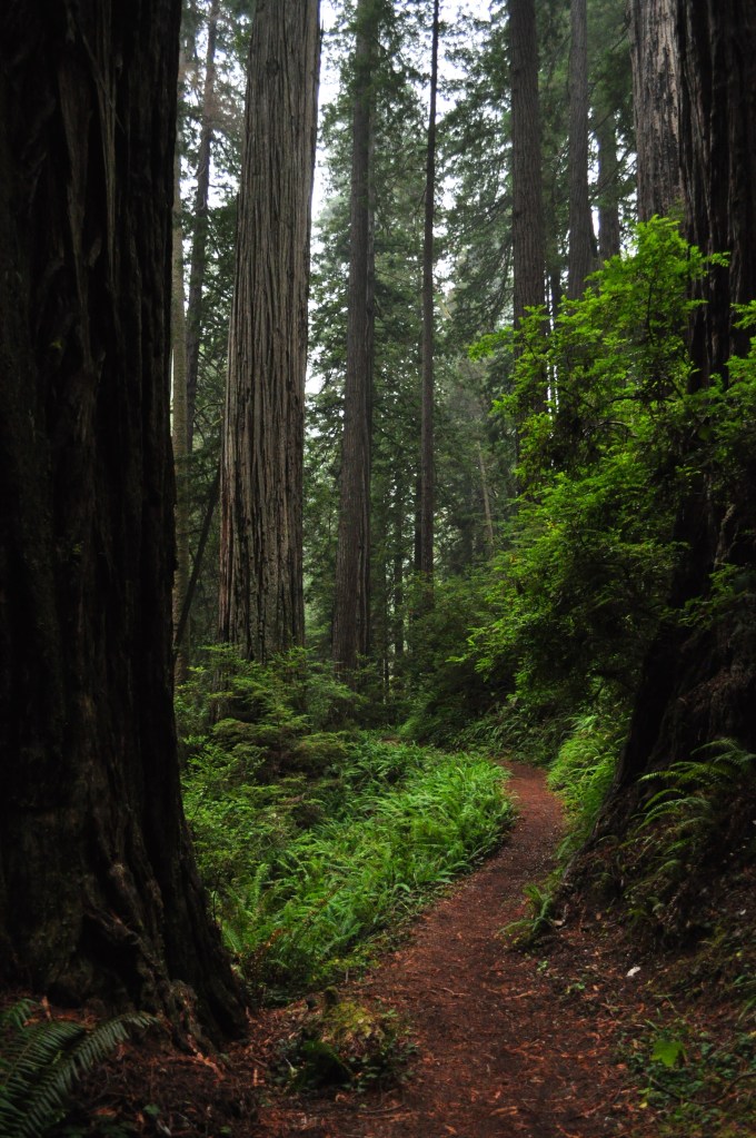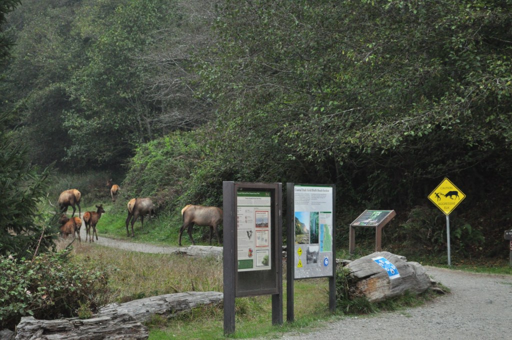 We headed up the Miners Ridge Trail through massive redwoods, then turned left onto the Clintonia Trail to cut across to the James Irvine Trail which took us to the end of the Fern Canyon lollipop trail and we headed into the canyon. I don’t know what I expected but it is truly a fern canyon and a super fun scramble through a creek bed that spat us out into a herd of elk peacefully grazing next to a sign warning us of the aggressive elk. After a long detour around the elk we came out to the end of the Fern Canyon Trail and took the Coastal Trail back to the campground.