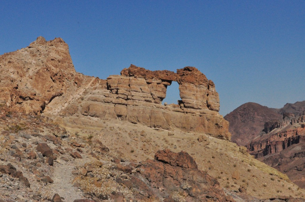 At a random little pullout off the highway there’s the start of a trail to one of the best named arches in the country. The rocks all along the hike are a variety of fun shapes and colors, yellows, red, blacks, some blue/green from what I’m assuming are copper deposits. With that comes some abandoned mining equipment from the 1800s.